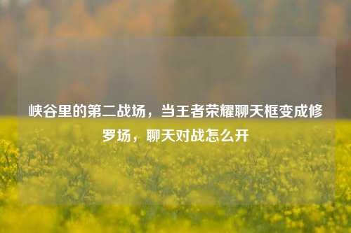 本文聚焦于王者荣耀中除团战外的“第二战场”——聊天框,当游戏内的文字交流演变为激烈的“修罗场”,言语交锋便成了心理博弈的关键,文章详细解析了王者荣耀聊天对战的开启方式,探讨了玩家如何利用聊天功能进行互动或施压,旨在帮助玩家掌握峡谷中的语言艺术,在心理层面占据优势,甚至扭转战局。