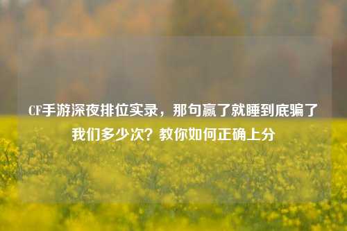 本文记录了CF手游玩家夜间排位的真实写照,调侃了“赢了就睡”这一屡试不爽的“谎言”,内容不仅展现了玩家欲罢不能的游戏热情,还针对晚间排位的特点,提供了具体的打法建议与策略,旨在帮助玩家在夜间保持状态、高效上分,同时提醒大家合理安排游戏时间。