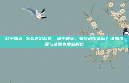 《和平精英》作为一款风靡全球的战术竞技手游,其战队系统不仅增强了玩家之间的社交互动,还提供了团队协作的竞技乐趣,在游戏过程中,玩家可能因各种原因需要退出当前战队,比如想寻找更活跃的战队、与朋友重组队伍,或暂时休息,本文将围绕“和平精英 怎么退出战队”这一关键词,为你提供详细的退出指南、注意事项和常见问题解答,助你顺利完成操作。