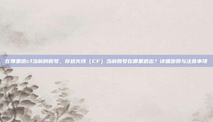 在现代游戏体验中,账号管理是玩家经常需要操作的一环,对于《穿越火线》(CF)有时可能需要退出当前账号——无论是为了切换账号、保护隐私,还是在公共设备上游戏后及时退出,许多玩家可能不清楚具体操作步骤,本文将详细介绍如何在CF中退出当前账号,并提醒相关注意事项,帮助您更安全、便捷地管理游戏账号。
