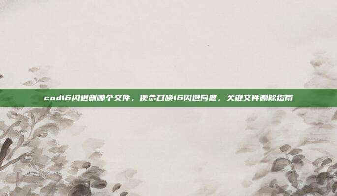 《使命召唤16:现代战争》(COD16)是一款备受玩家喜爱的射击游戏,但在游玩过程中,不少玩家遇到了游戏闪退的问题,这严重影响了体验,闪退可能由多种原因引起,如系统兼容性、驱动冲突或游戏文件损坏,游戏配置文件损坏是常见诱因之一,本文将聚焦于通过删除特定文件来解决闪退问题,帮助您快速恢复游戏正常运行。