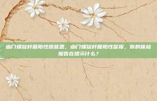 当您拿到体检报告,看到“幽门螺旋杆菌阳性”或“Hp阳性”这个结论时,心里难免会咯噔一下,这个医学术语究竟意味着什么?是严重疾病的信号,还是无需担心的小问题?本文将为您详细解读,帮助您科学认识并妥善应对。