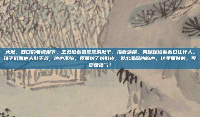 王叔的蒲扇摇得慢了些,晚霞映在他圆圆的肚子上,泛着金光,我忽然明白,或许人生最难能可贵的,就是这份“大肚能容”的豁达与坦然。