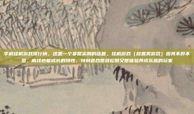 为了帮你找到最适合“摸鱼”的神作,我们综合了游戏的人气、可玩性、美术风格以及“挂机收益”的合理性,整理了这份 《2024年手机挂机游戏排行榜》。