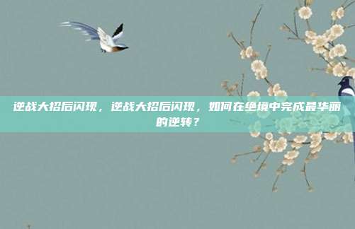 愿你在生活中,也能在每一次“大招释放”后,找准时机,完成属于你的绝地反击。