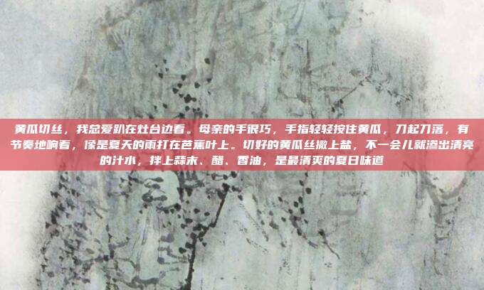 夜深了,厨房的灯还亮着,案板上,最后一根黄瓜在刀下绽开细丝,像月光洒在水面,抬手关灯时,忽然觉得,多年后,女儿或许也会记得这个画面——一个女人,站在厨房里,认真地为她切着黄瓜丝。