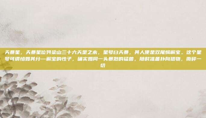不是因为勇敢,而是因为这该死的星宿命格,天暴星就是要暴烈,要疯狂,要不顾一切,哪怕前面是刀山火海,也要冲上去撕咬一番。