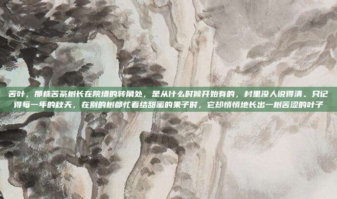 我回到老屋,那株苦茶树还在,只是再没有人去摘它的叶子,我立在树下,看了很久很久,伸手摘下一片,放进嘴里嚼了嚼,还是那么苦,苦得眼泪都出来了。